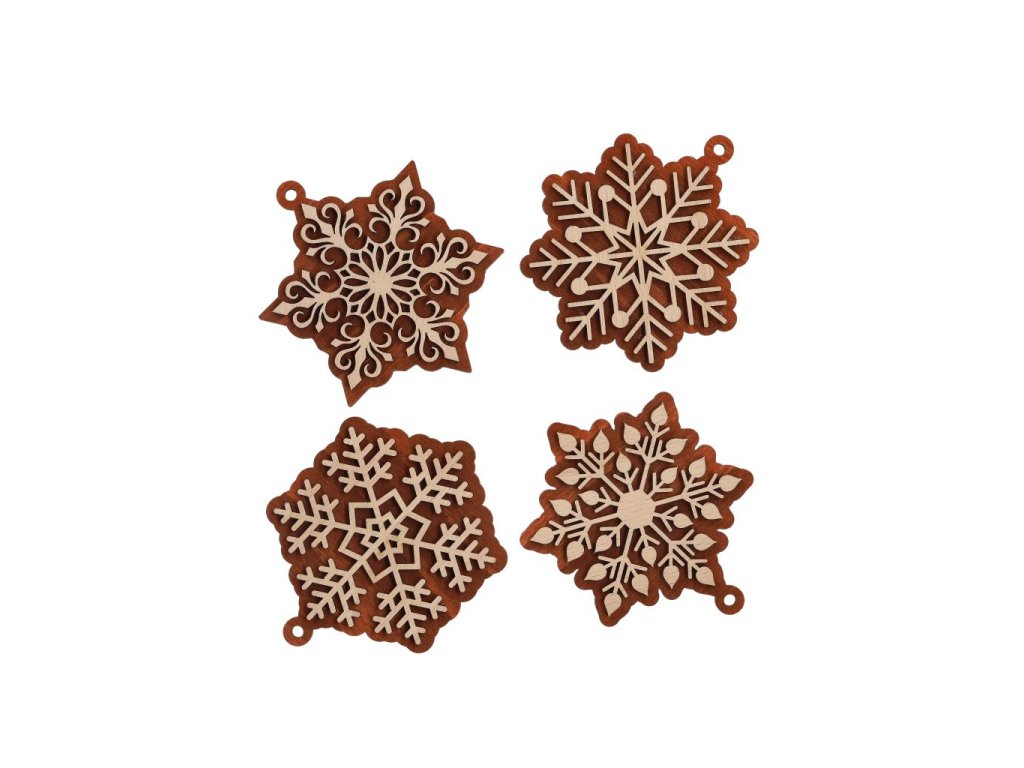 Dřevěné dvoubarevné vyřezávané vločky.