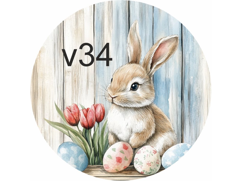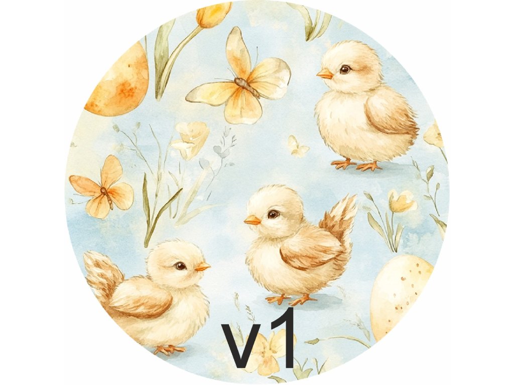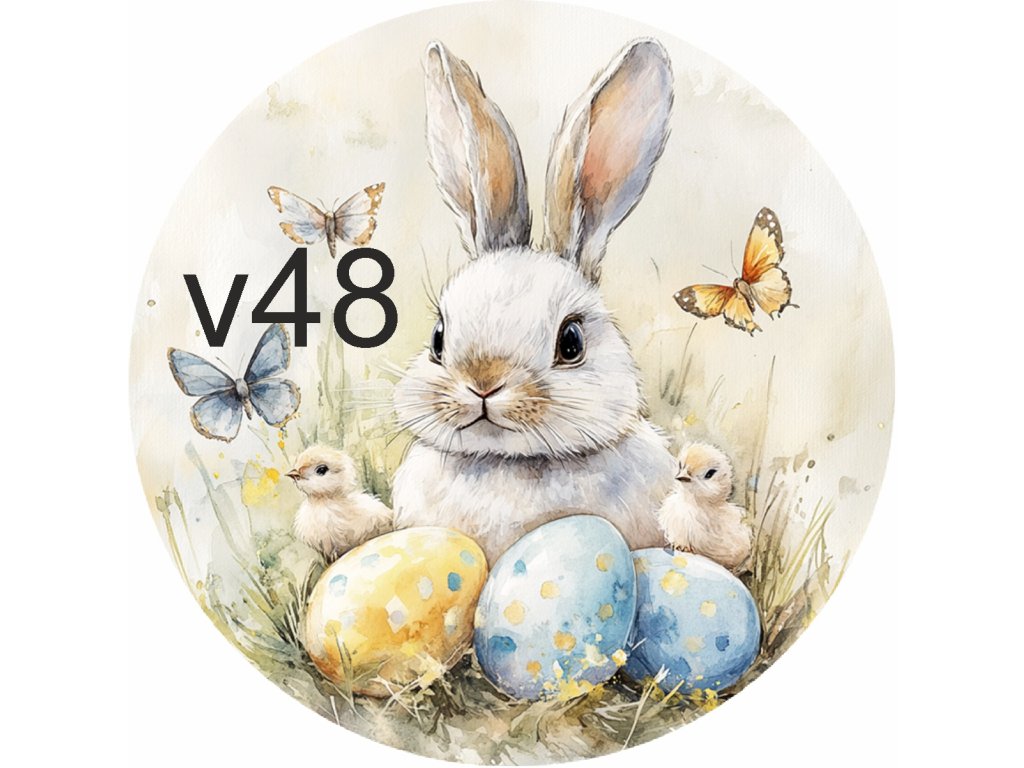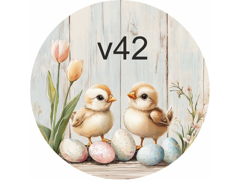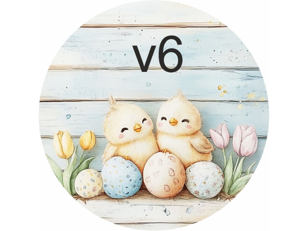 Materiál: truhlářská překližka Průměr: 10 cm Potisk: UVDTF — odolný, stálobarevný, bez nálepkového efektu Počet motivů: 49 (králíčci, kuřátka, kachničky, ovečky, kraslice)