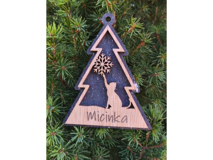 Dřevěná vyřezávaná vánoční ozdoba se jménem vašeho kočičího mazlíčka :) Dobrá rada nad zlato: čím delší jméno ( např. paní Úžasňáková nebo Bucifáleček ), tím víc se ozdoba láme.