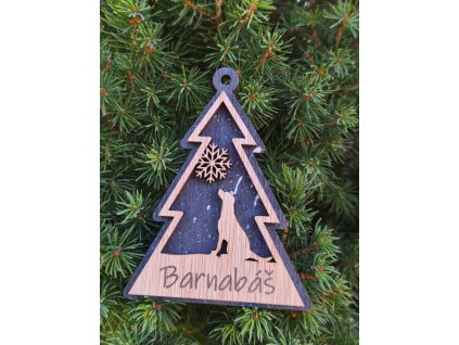 Vánoční vyřezávaná dřevěná ozdoba na stromeček se jménem.