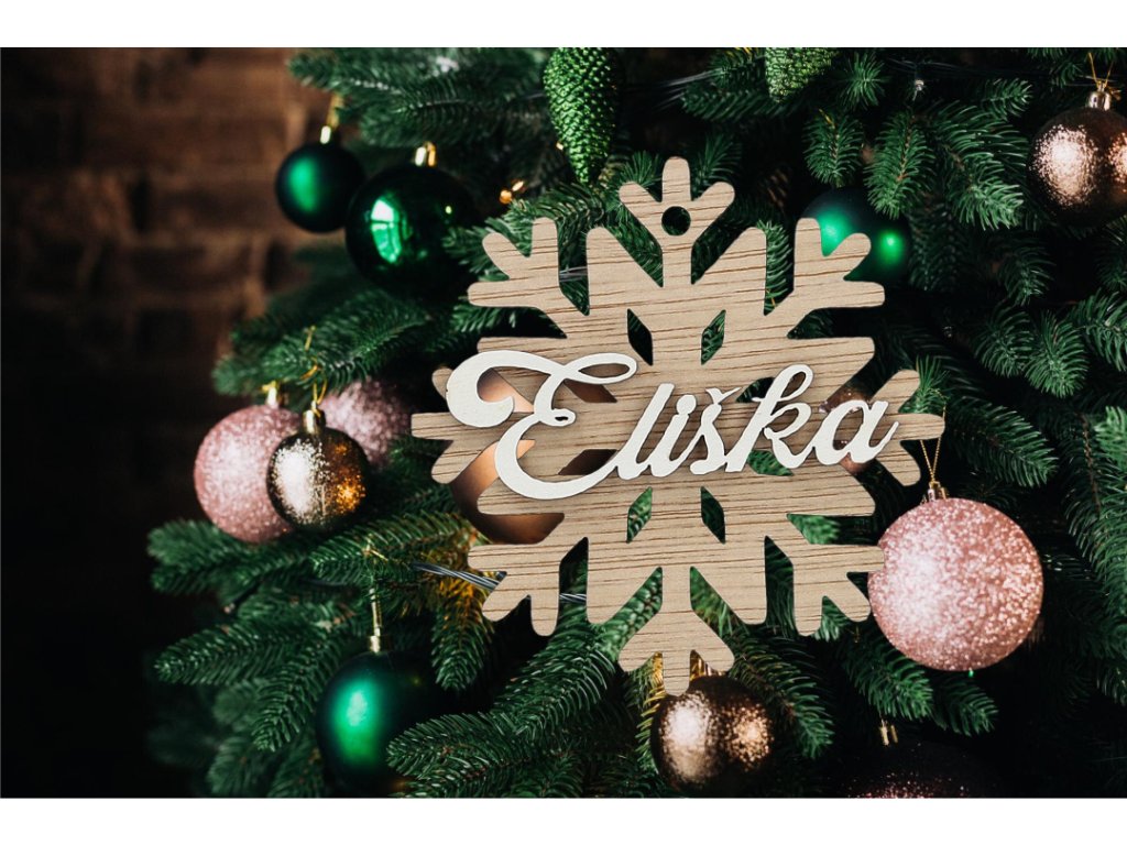Na každé vločce je pečlivě nalepené vyřezávané jméno v bílé barvě, které dodává ozdobě osobní dotek. Tato možnost personalizace činí z ozdoby ideální dárek pro vaše blízké, neboť každá vločka je unikátní a nese v sobě zvláštní význam.