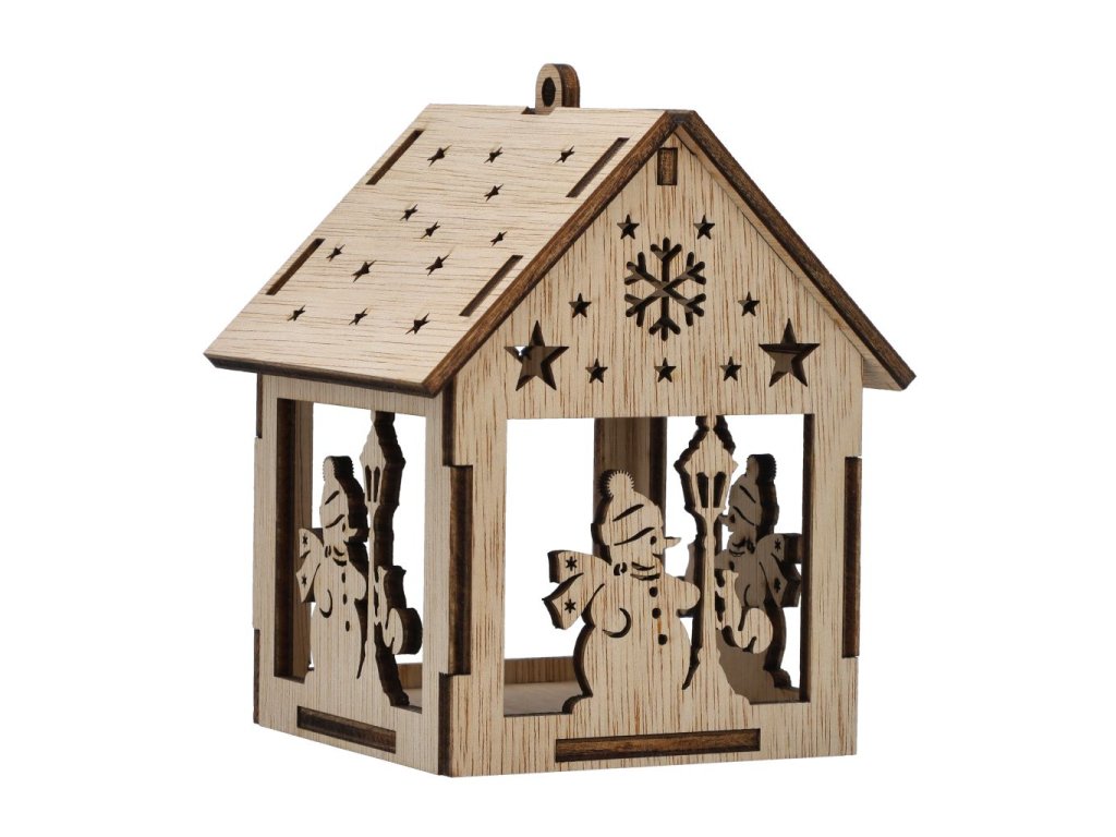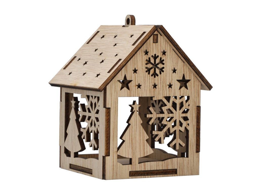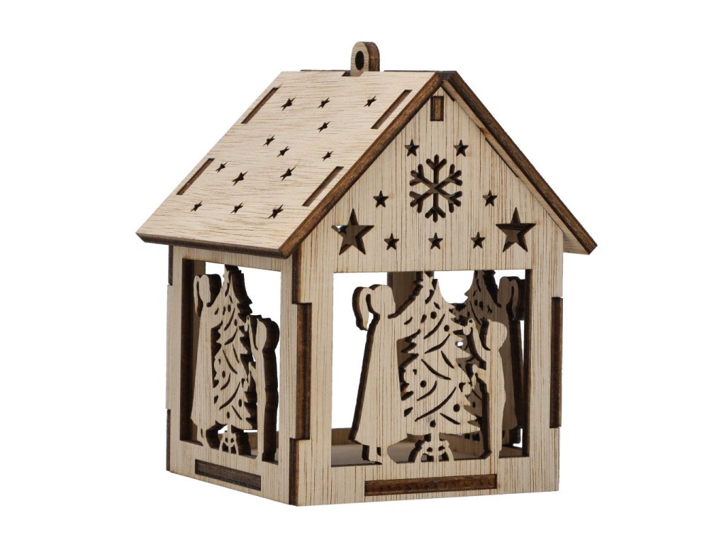 Vyřezávaný závěsný domeček na LED čajovou svíčku